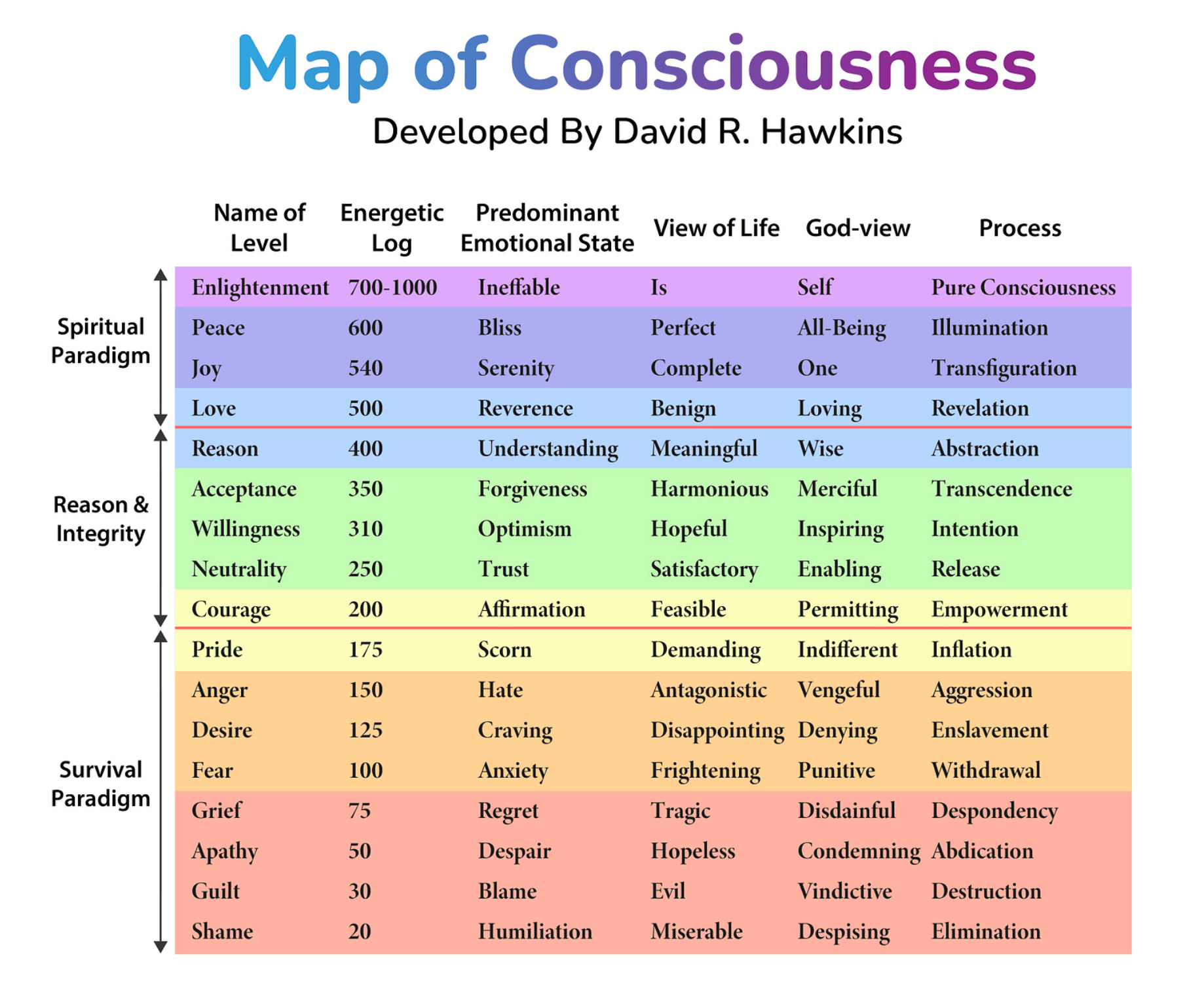 The late Dr. David Hawkins mapped out human consciousness in a famous diagram called the “Map of Consciousness”.